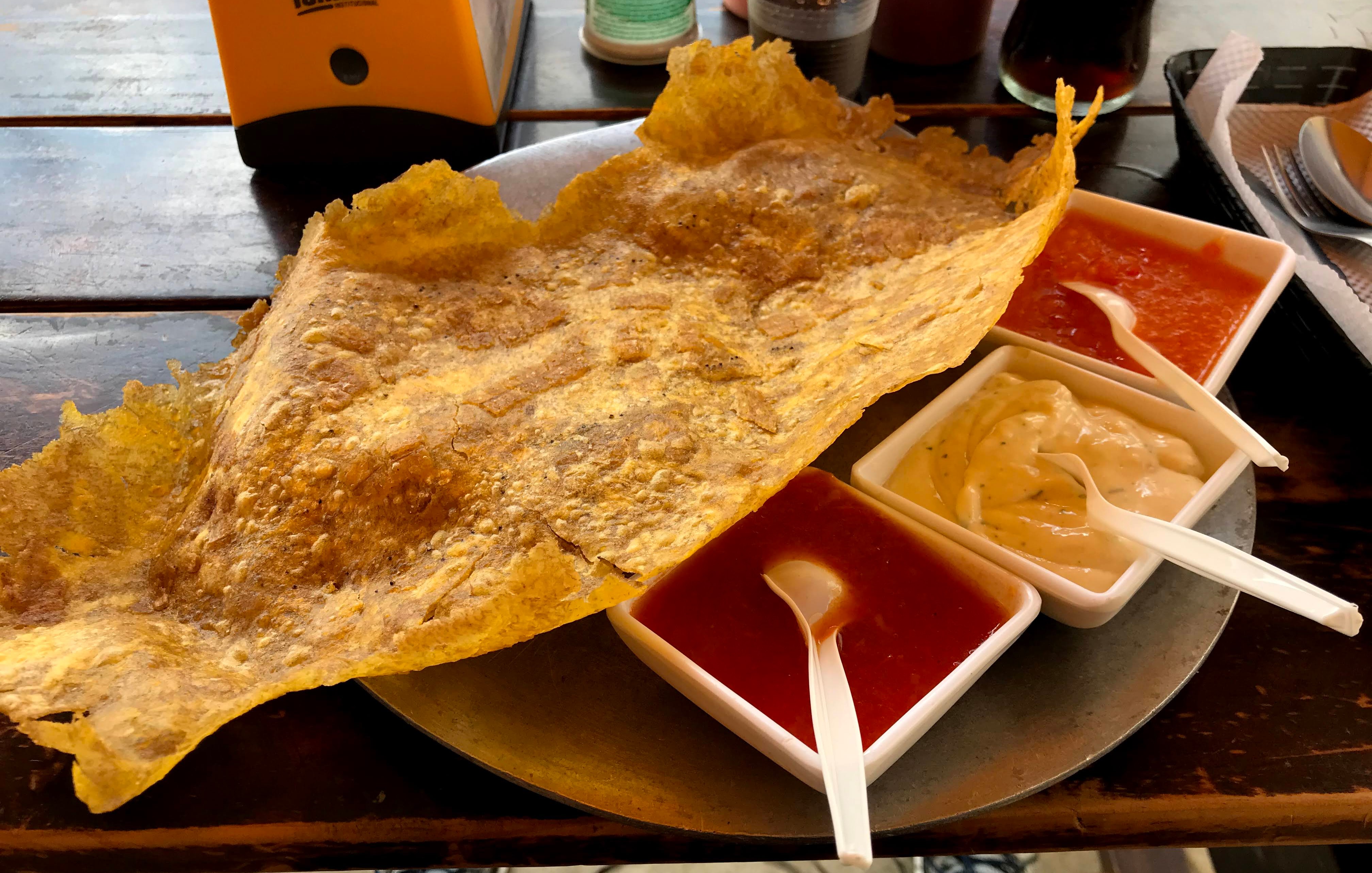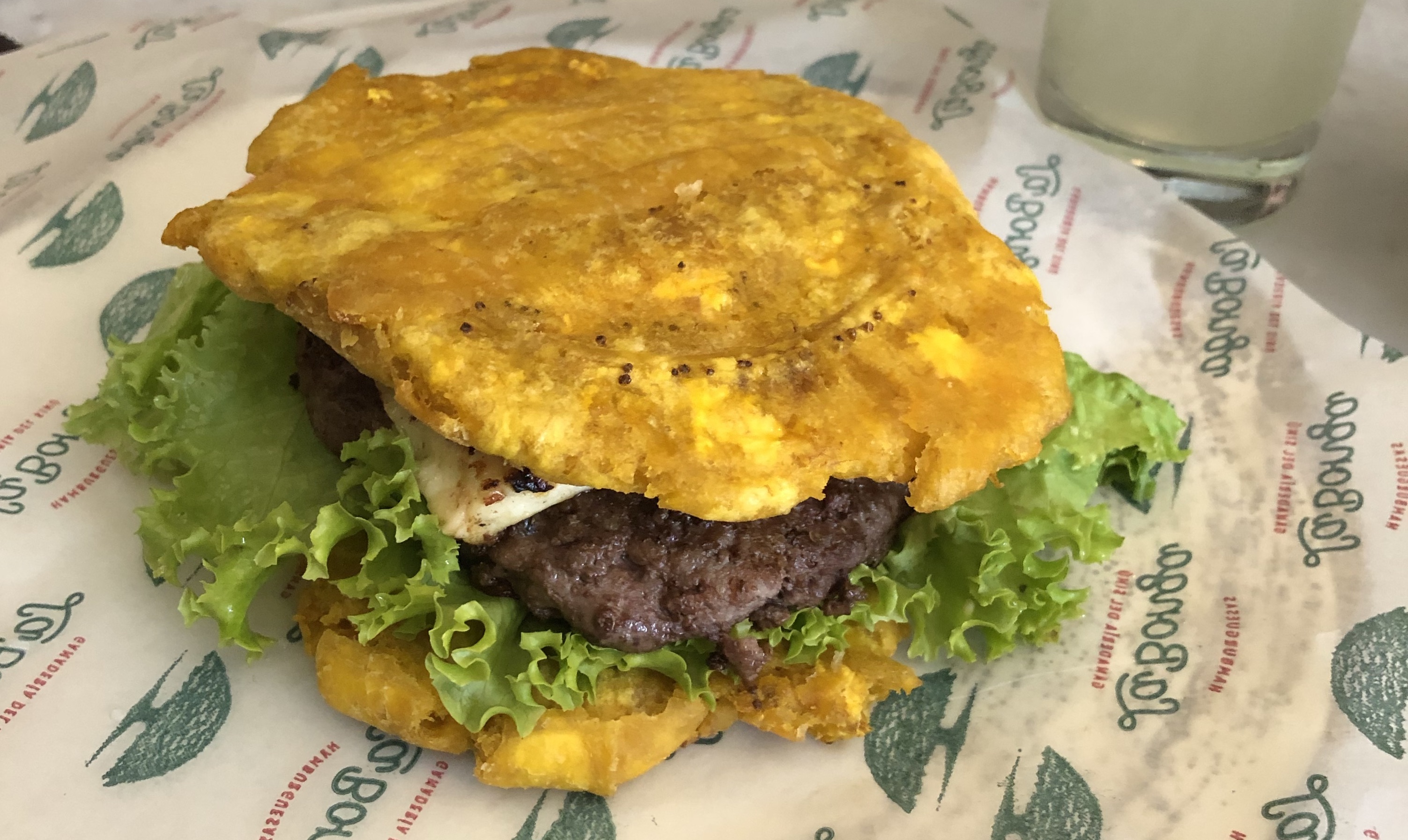 Had a chance to try more Colombian food today. They are a big fan of plantains. Here is a burger with fried plantains instead of buns.