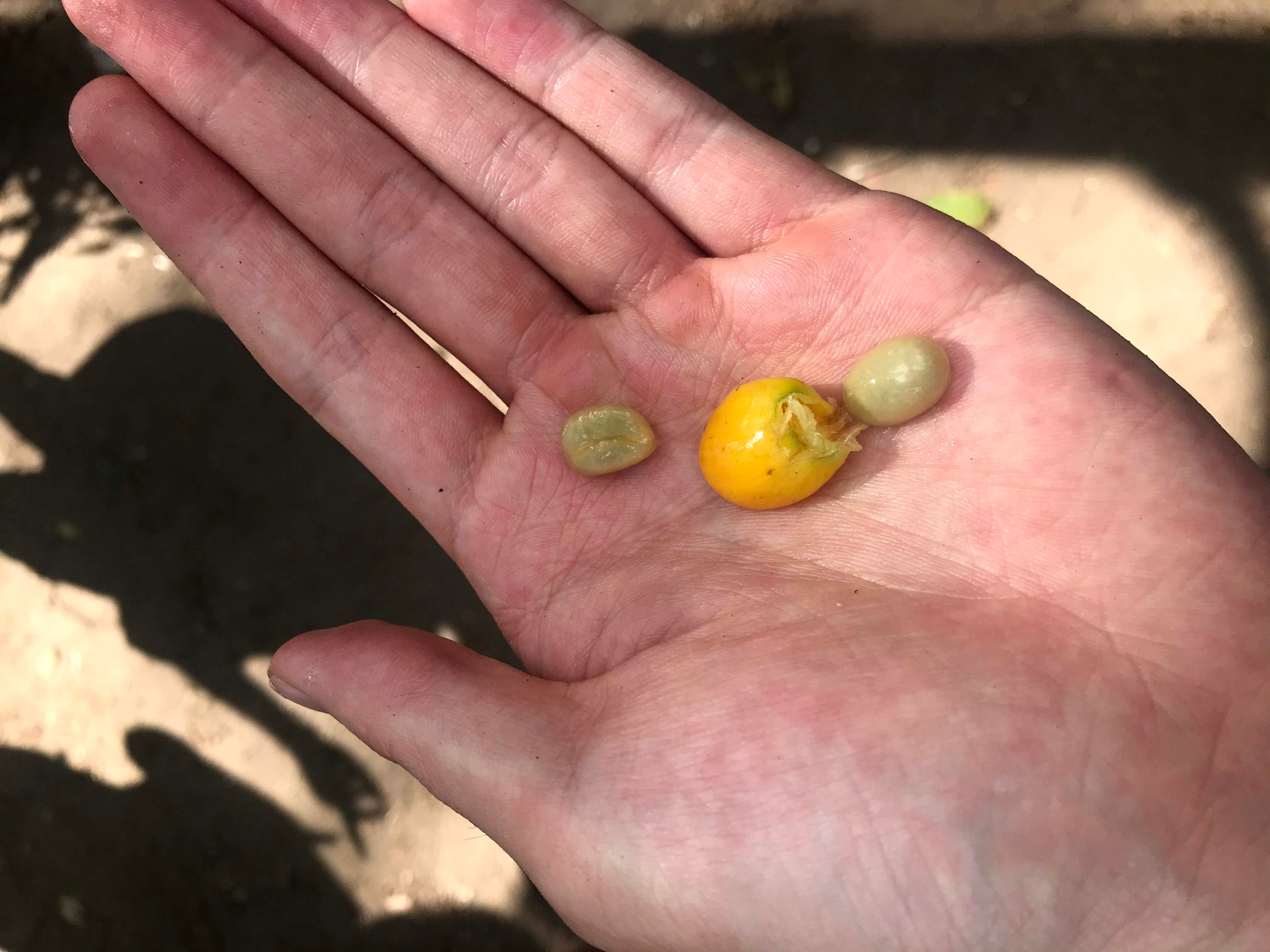 ...I went on a tour of a nearby coffee farm. Salento is part of Colombia's "Coffee Triangle", so theoretically the coffee should have tasted really good, but because I don't like coffee, it tasted even worse than usual (in addition to being bitter, it was also sour). However, I still really enjoyed the experience because I learned a lot about coffee. For example, there are two tiers of coffee beans produced at the farm. All the top-tier beans get exported, and the bottom-tier ones stay in the country to be consumed by Colombians. Sad. Also, coffee "cherries" usually have two beans inside, like so:
